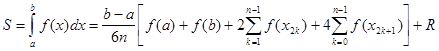 Где R - остаточный член. Это формула называется формулой Симпсона.