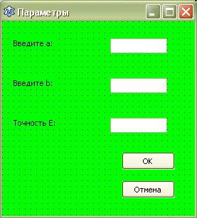 Далее была создана форма Параметры, предназначенная для введения данных.