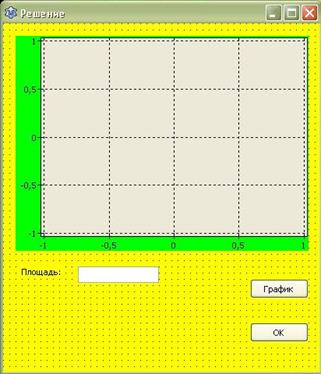 Затем была создана форма Решение, на которой будет показана площадь по разным методам вычислений и визуализироваться один из методов.