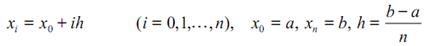 Предполагается, что отрезок дифференцирования [ a , b ] разбит на n равных частей системой точек (сеткой)