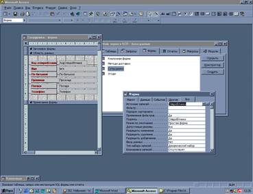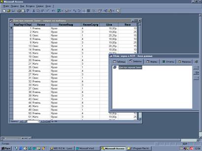Окремi задачi створеної бази даних вирiшенi у виглядiзапитiв, звiтiв та програмних модулей на мовi Visual Basic forApplication. Всi розробленi компоненти бази даних поєднанi вєдиний програмний засiб за допомогою головної кнопочної форми сучасного Windows-дизайну.У випадку впровадження результатiв роботи потрiбно звернути увагу на поступове заповнення потрібними даними таблиць-довідників та головних таблиць. Пiд час адаптацiї системи до реального об'єкту необхідно, у разі потреби, додати до головної кнопочної форми додаткові таблиці, форми, запити та звіти.