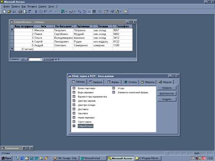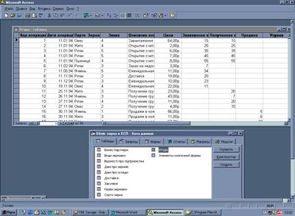 Оскiльки задача облiку зернових КСП належить до задач базиданих, для її вирiшення необхiдно використати одну з СУБД, якiпрацюють пiд Windows. На сьогоднi найбiльш поширеною з потрiбнихпрограмних продуктiв безумовно є СУБД Access, оскiльки вона входить до складу присутнього практично на кожному Windows-компьютерi Microsoft Office.