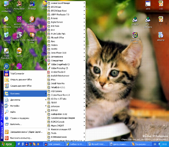Рисунок 1. Рабочий стол Windows с открытым Главным меню и пунктом "Программы"