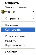 Некоторые пользователи часто используют другой способ. Они выделяют один или группу объектов, затем «копируют» или «вырезают» их в буфер обмена. Эта делается с помощью меню, которое вызывается щелчком правой кнопкой мыши на выделенных объектах (см. рисунок 5) или с помощью панели инструментов окна Windows. За тем переходят во вторую папку «получатель» и с помощью того же меню или панели инструментов вставляют объекты в текущую папку командой «вставить»(см. рисунок 6).