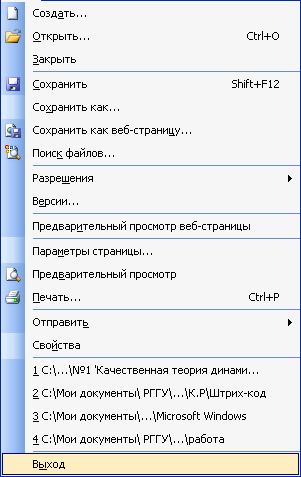Рисунок 9. Пункт "Файл" меню редактора Microsoft Word