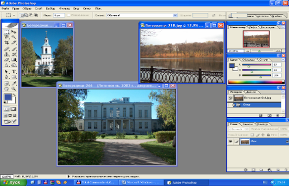 Рисунок 10. Окно программы Adobe Photoshop CS (материнское) с дочерними окнами открытых документов (MDI-интерфейс)