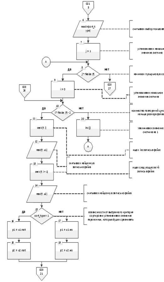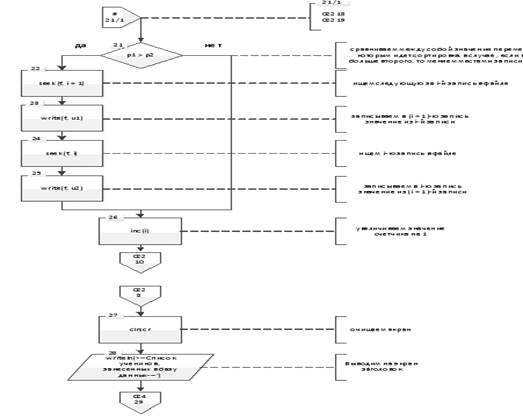 В описываемой программе используется пузырьковый метод сортировки файла.