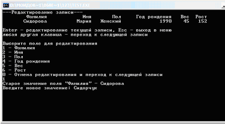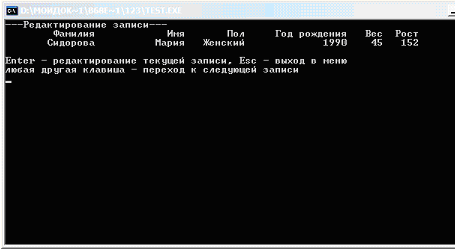 Для добавления данных нужно ввести цифру «2» в окне программы указанном на рисунке 1, после чего нажать клавишу «Enter». Далее окно программы примет следующий вид (рис. 4).