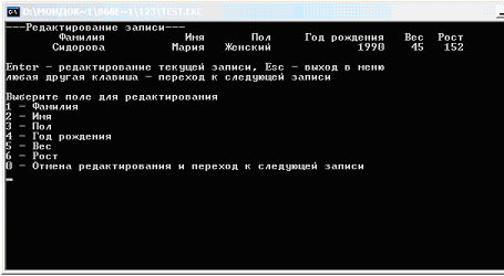 2: edit; {если пользователь ввел "2", то вызываем процедуру редактирования записи}