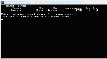 writeln('Enter - удаление текущей записи, Esc - выход в меню');