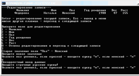 Используя программу «Учебная база данных» пользователь может добавлять данные об учениках, редактировать или удалять уже имеющуюся информацию, а также сортировать сведения об учениках по росту или весу.