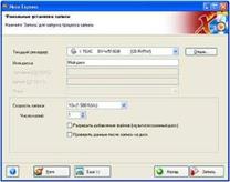 Будет открыто окно финальных установок записи (см. рисунок 26). Здесь можно переопределить тип рекордера (существующий физический рекордер ТЕАС представлен как два различных логических устройства записи: для CD и для DVD-дисков, также есть «устройство-образ» – ImageDrive для записи проекта в файл ISO или UDF), определить название диска, скорость записи и количество копий диска.