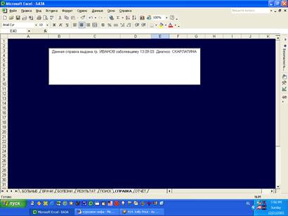 - “Справка о болезнях” – отбор информации для выдачи справки данному больному;