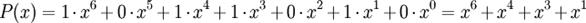 , последовательность коэффициентов которого представляет собой исходную последовательность. Например, последовательность битов 1011010 соответствует многочлену: