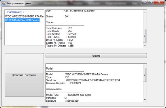 - private void GetHardDiskInfo() – функция считывания информации о запоминающем устройстве.