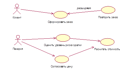 На схемі зображений процес зв’язку клієнта з відділом продаж пекарні.