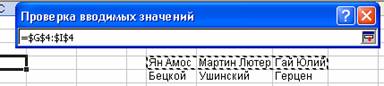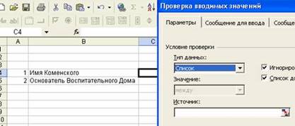 2. Оформите выбор: в ячейке C4 (напротив первого вопроса) выделите ячейку, нажмите меню Данные ® Проверка