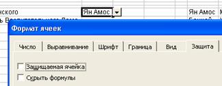 - с помощью меню Формат лишить защиты те ячейки, в которые вносится ответ и реакция, а также подсчет баллов: