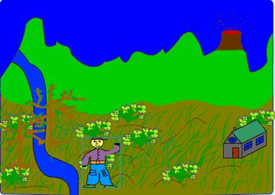 3. Для создания анимации вулкана используем похожую технику. Создаем новый слой, на первом кадре рисуем вулкан и несколько летящих из него камней (рис. 6).