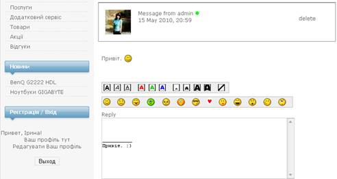 Головна сторінка сайту для зареєстрованого користувача (Рис.41) :