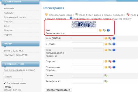 На Рис.25 ми бачимо, що при реєстрації нових користувачів наш сайт є зовсім незахищеним, тому для безпеки від різних спамів, встановимо пагін Сaptcha , який іншими словами називають захищеним кодом.