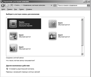 На АС класса 1, т.е. на компьютере без сетевого соединения c установленной ОС Windows 7 создадим 4 пользователя, которым будут соответствовать 4 свойства защищаемой информации: конфиденциальности, целостности, доступности, наблюдаемости.