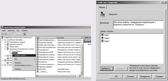Теперь создадим группу пользователей, которой будет предоставлена возможность использования файлов с режимом "Секретно". Добавим в неё первые 3 пользователя.