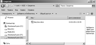 Зайдем под учетной записью администратора, которой могут пользоваться должностные лица, владеющие полнотой прав на пользование информацией уровня "Секретно" и "Для служебного пользования", создадим папку "Секретно" и скопируем в неё несколько файлов, которым будет соответствовать данный режим секретности информации. Положим, что данные документы содержат государственную тайну, а доступ к ним полагается только пользователям № 1-3. Пользователь №4 имеет доступ лишь к информации для служебного пользования, понятие которой охватывает всю остальную информацию на компьютере.