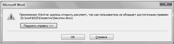 Зайдем под учетной записью пользователя №1 и попытаемся открыть документ. При попытке доступа к файлу система вывела предупреждение о том, что пользователь не обладал необходимыми правами. Таким образом, ОС успешно справилась с защитой конфиденциальности информации на уровне разграничения доступа.