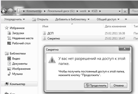 Наконец, во время открытия пользователем №4 директории "Секретно" система выдала предупреждение о запрете. Однако для успешного выполнение данной задачи в качестве альтернативного решения было предложено ввести аутентификационные данные администратора.