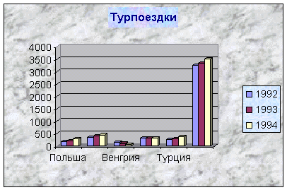 При помощи этого продукта можно анализировать большие массивы данных. В Excel можно использовать более 400 математических, статистических, финансовых и других специализированных функций, связывать различные таблицы между собой, выбирать произвольные форматы представления данных, создавать иерархические структуры. Воистину безграничны методы графического представления данных: помимо нескольких десятков встроенных типов диаграмм , можно создавать свои, настраиваемые типы, помогающие наглядно отразить тематику диаграммы. Те, кто только осваивает работу с Excel, по достоинству оценят помощь "мастеров" - вспомогательных программ, помогающих при создании диаграмм. Они, как добрые волшебники, задавая наводящие вопросы о предполагаемых дальнейших шагах и показывая, в зависимости от намечаемого ответа, результат, проведут пользователя "за руку" по всем этапам построения диаграммы кратчайшим путем.
