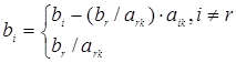 Пусть это достигается для некоторого i=r. Тогда из базиса исключается вектор Рr , а число ark называют разрешающим (генеральным) элементом. Столбец и строку, на пересечении которых находится элемент ark называют направляющими (генеральными).