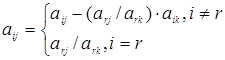 После выделения направляющей строки и направляющего столбца находят новый опорный план и коэффициенты разложения векторов Рj через векторы нового базиса, соответствующего новому опорному плану. Положительные компоненты нового опорного плана вычисляются по формулам: