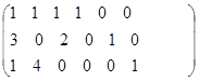 | 1 | P1 | C1 | b1 | 1 | 0 | … | 0 | … | 0 | a1 m +1 | … | a1 k | … | a1n |