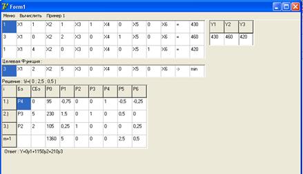 В столбце P0 записываются положительные компоненты искомого опорного плана. В нем же в результате вычислений записываются компоненты опорного плана. Столбцы векторов Pj представляют собой коэффициенты разложения по векторам данного базиса.