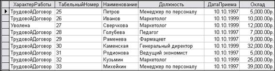 Рисунок 3 – данные о сотрудниках в головном офисе