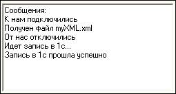 На стороне сервера использованы обработчики исключений при выполнении таких событий как принятие файла от клиента, создание OLE-объекта 1С:Предприятие, запись данных в 1С. При возникновении ошибок во втором и третьем событиях в окне "Сообщения" также появляются сообщения о том, что произошла ошибка.