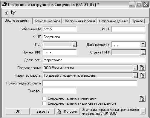 На рисунке 4 показано, что сотрудница Сверчкова еще числится на предприятии.