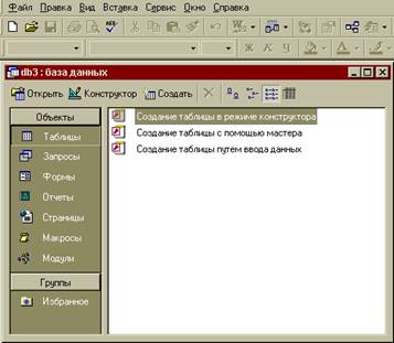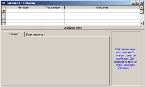 До створення нової таблиці можна приступити відразу після відкриття бази даних.