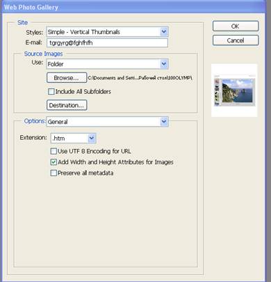 Рис.1 Діалогове вікно настройок Web Photo Gallery