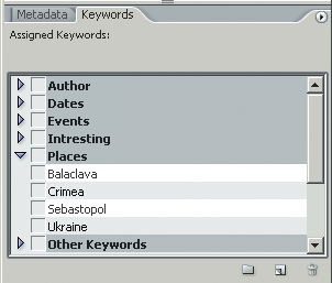 Щоб до кінця проникнутися всіма можливостями даних, що впроваджуються у фотографію, перейдіть на наступну вкладку - Keywords (Ключові слова). Завдяки заповненню ключових слів ви дістаєте можливість розрізняти файли по їх змісту.