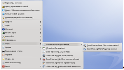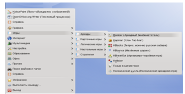 · в основной части меню находятся разделённые по областям применения (а не по названию фирмы-производителя, как в некоторых других системах) программы;