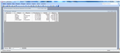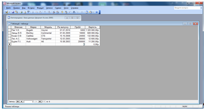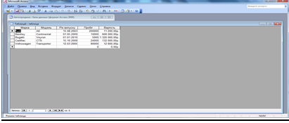 Виділяю поле «Пробіг» командою віконного меню «Записи»- «Сортировка по возростанию» відсортовую записи.