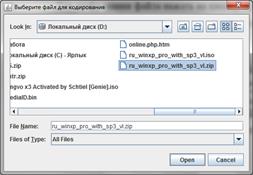 jfc.setDialogTitle("Выберите файл для кодирования");