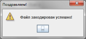 JOptionPane.showMessageDialog(new JButton("Ok"), "Файл закодирован успешно!","Поздравляем!", JOptionPane.WARNING_MESSAGE);