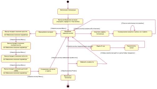 Требуется разработать средствами Rational Rose модель встроенной системы управления работой телевизора.