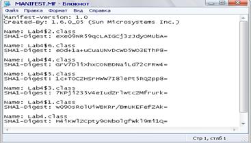 В него добавляются записи для каждого файла класса, входящего в архив. Запись файла класса включает имя и дайджест файла.