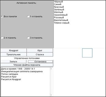 В данном курсовом проекте был разработан Java-апплет, использующий механизм многопоточности Java: использование двух потоков команд, реализующих движение геометрических фигур в области рисования апплета. Также апплет имеет возможность обращаться к локальной файловой системе, при предоставлении соответствующих прав доступа. Возможность обращения к локальной файловой системе реализована с использованием специализированных классов Java API.