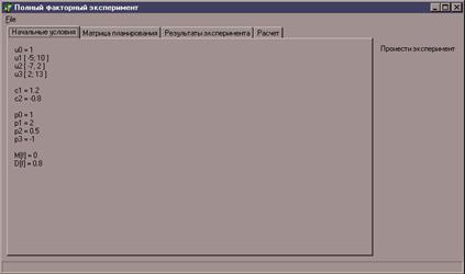 процедура осуществляет эксперимент при заданных условиях.