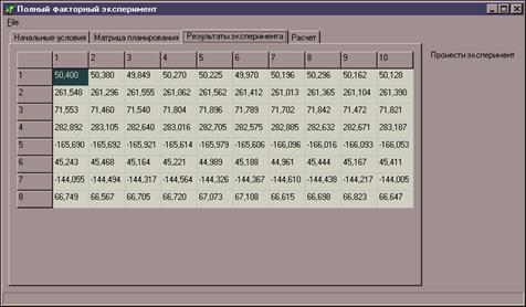 матрица хранящая результаты эксперимента